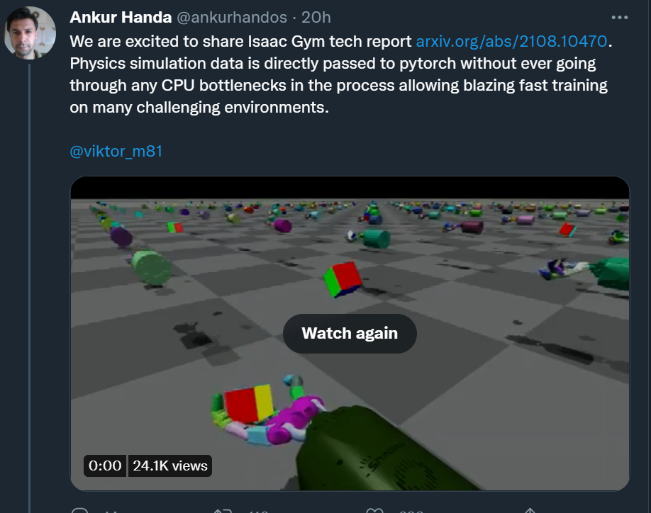 为什么 Isaac Gym 可以如此高效?昨天,英伟达机器人研究科学家(前 OpenAI 研究科学家)Ankur Handa 在推特上公布,他们已经发布了 Isaac Gym 的技术报告,里面详细解释了 Isaac Gym 的构建细节。