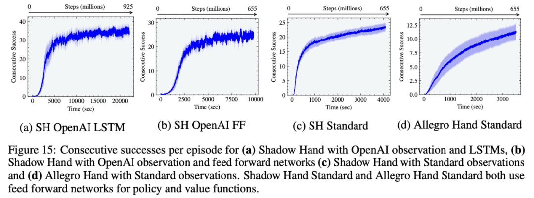 值得一提的是, OpenAI 仅显示 1 个随机种子的结果,相比之下,该研究中最好的种子在短短 2.5 小时内使用 LSTM 实现了 37 次连续成功。
