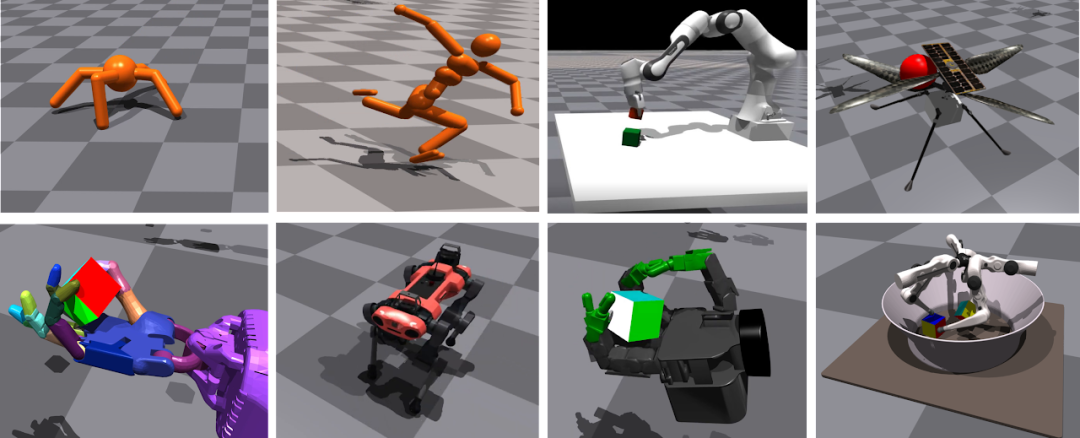 - 实施多个高度复杂的机器人操作环境,这些环境可以在一个 GPU 上以每秒数十万 step 的速度模拟;