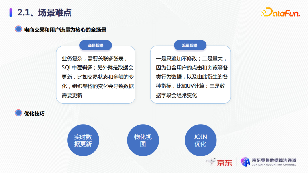 京东零售是以电商交易和用户流量为核心的场景,有以下两方面难点: