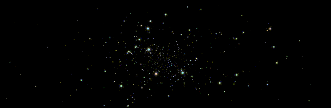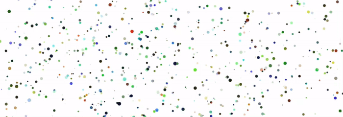 别着急,我们尝试随机放大缩小每个粒子,并且,给它们赋予不同的颜色: