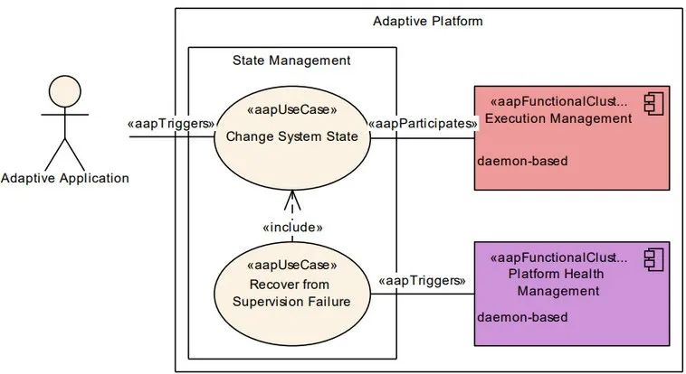 执行管理和状态管理是 AUTOSAR 自适应平台的基本功能集群,必须在任何情况下都能正常运行和工作。因此,平台健康管理应始终监督状态管理和执行管理的相应进程。这些进程中的监督故障应通过机器重置来恢复,因为正常的错误恢复方式(通过状态管理和执行管理)不再可靠。