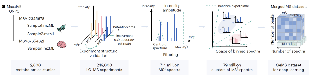 该研究构建的核心数据基础是从 MassIVE GNPS 存储库深度挖掘的 GeMS 数据集,其规模与质量在代谢组学领域具有突破性意义。