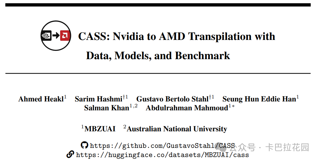 我们推出 CASS,这是首个用于跨架构 GPU 代码转换的大规模数据集和模型套件,目标是实现源级(CUDA ↔ HIP)和汇编级(英伟达 SASS ↔ AMD...
